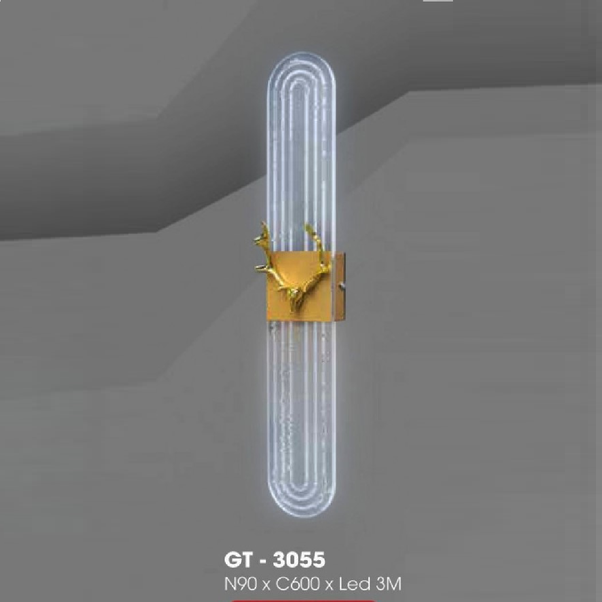 GT - 3055: Đèn gắn tường LED Mica - KT: W90mm x H600mm - Đèn LED đổi 3 màu