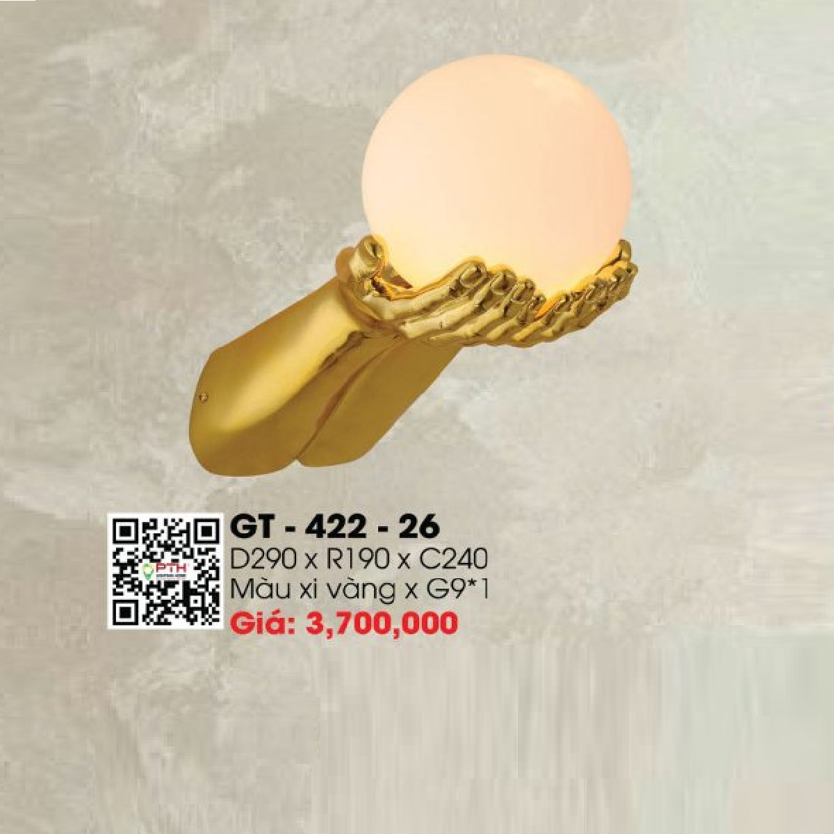 - Sản phẩm: GT - 422-26: Đèn gắn tường chao thủy tinh - KT: L290mm x W190mm x H240mm - Đèn LED G9 x 1