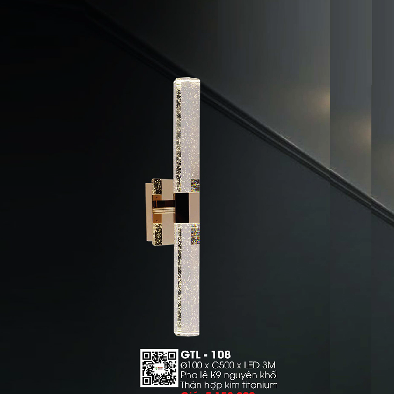 GTL-108: Đèn gắn tường LED Phale K9 - KT: Ø100mm x H500mm - Đèn LED đổi 3 màu