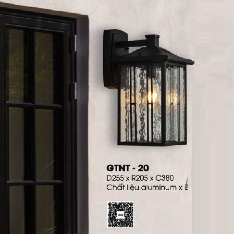 GTNT - 20: Đèn gắn tường ngoài trời - KT: L255mm x W205mm x H380mm - Bóng đèn E27 x 1 bóng