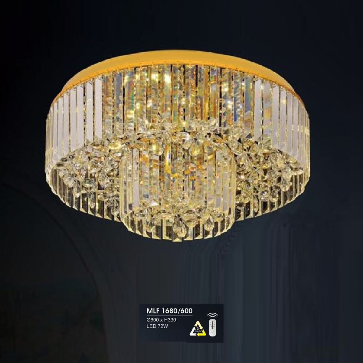 - Sản phẩm: H - MLF 1680/600: Đèn áp trần LED Phale - KT: Ø600mm x H330mm - Đèn LED 72W đổi 3 màu - Remote