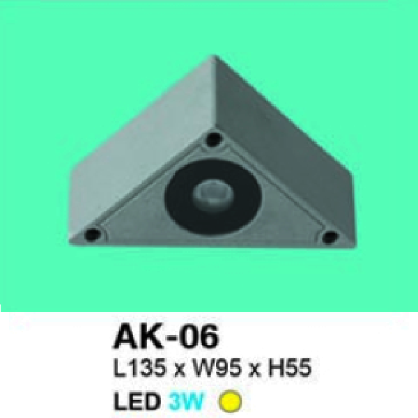- Sản phẩm: HF - AK - 06: Đèn LED gắn nổi bậc cầu thang - KT: L135mm x W95mmxH55mm - Đèn LED 3W ánh sáng vàng