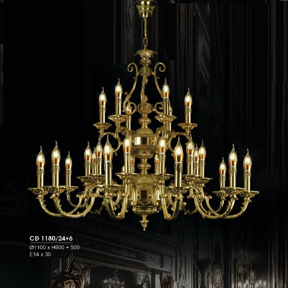 • Sản phẩm: HF- CĐ 1180/24+6: Chùm đồng 30 tay - KT: Ø1100 x H900 + 450mm - Đèn chân E14 x 30 bóng