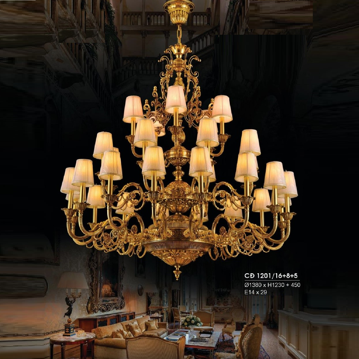 HF- CĐ 1201/16+8+5: Chùm đồng 29 tay - KT: Ø1308mm x H1230mm + 450mm - Bóng đèn chân E14 x 29 bóng