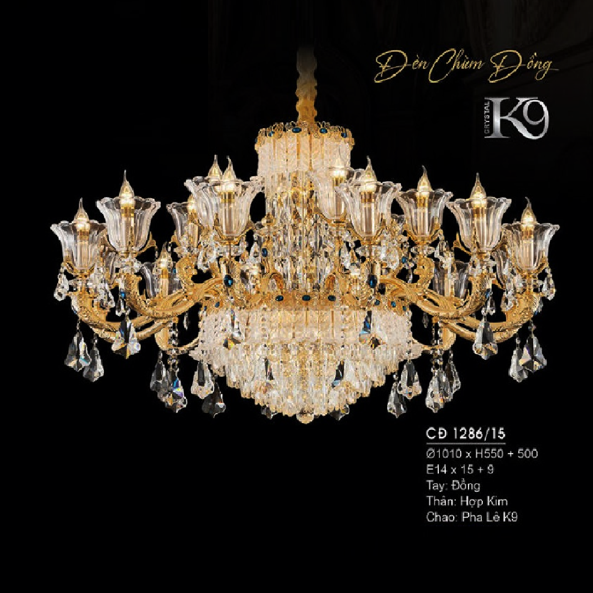 S - C 7746/15: Đèn chùm nến 15 tay  - KT: Ø910mm x H930mm - Bóng đèn nến E14 x 15 bóng