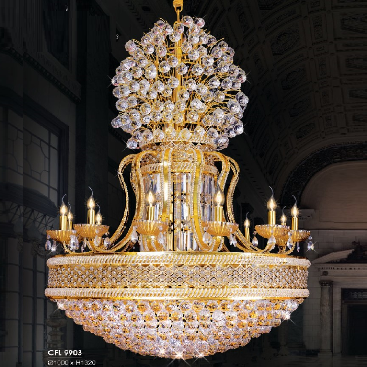 HF - CFL 9903: Đèn chùm Phale - KT: Ø1000 x H1320mm - 545 Hạt Phale - Bóng đèn chân E14 x 45 bóng + Đèn LED SMD