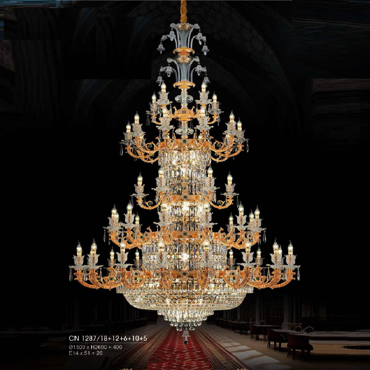 5. HF - CN 1287/18+12+6+10+5: Đèn chùm Phale nến 51 tay - KT: Ø1500mm x H2600mm + 400mm - Bóng đèn E14 x 51 bóng