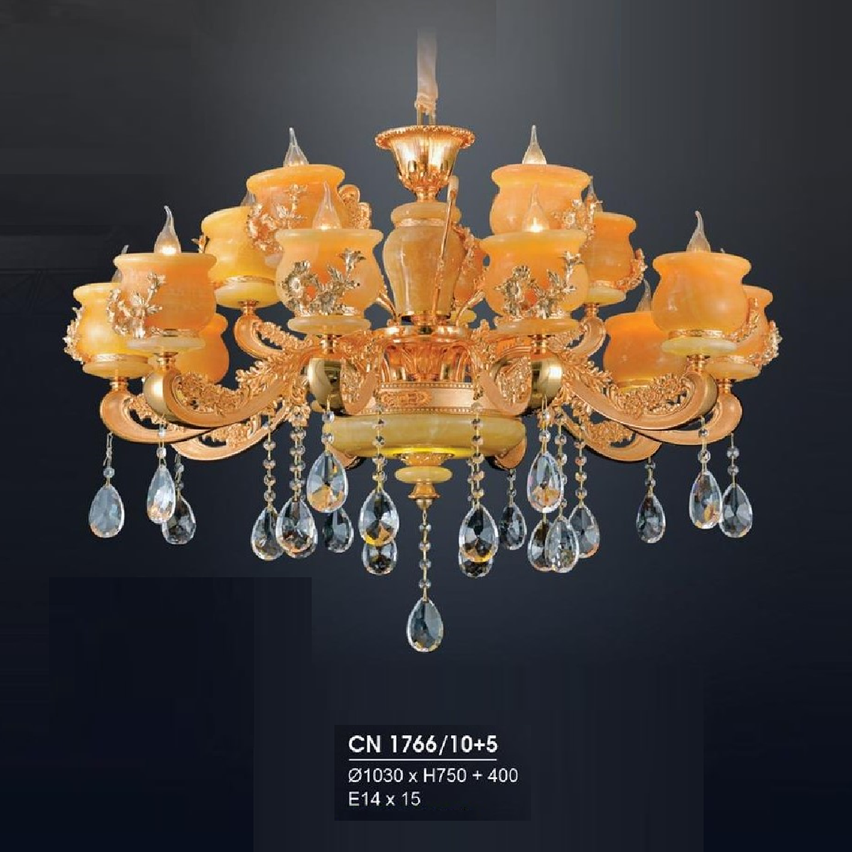 - Sản phẩm: HF - CN 1766/10+5: Đèn chùm 15 tay, chao đá khảm hoa văn - KT: Ø1030mm x H750mm + 400mm - Bóng đèn E14 x 15 bóng