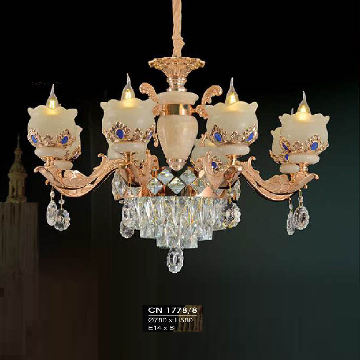• Sản phẩm: HF - CN 1778/8: Đèn chùm nến 8 tay - KT: Ø780mm x H580mm - Bóng đèn E14 x 8 bóng