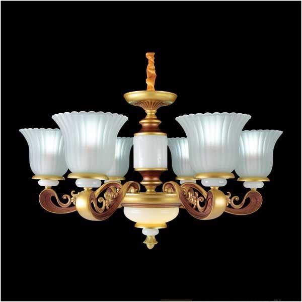 CNQT - 78: Đèn chùm 6 tay chao thủy tinh - KT: Ø600mm x H900mm - Đèn chân E27 x 6 bóng
