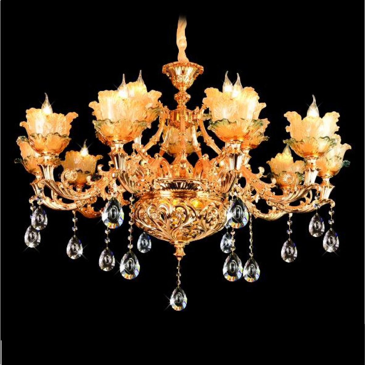 CODE: 9830 - 15: Đèn chùm đồng chao đá 15 tay - KT: Ø1000mm x H600mm - Bóng đèn chân E14 x 15 bóng