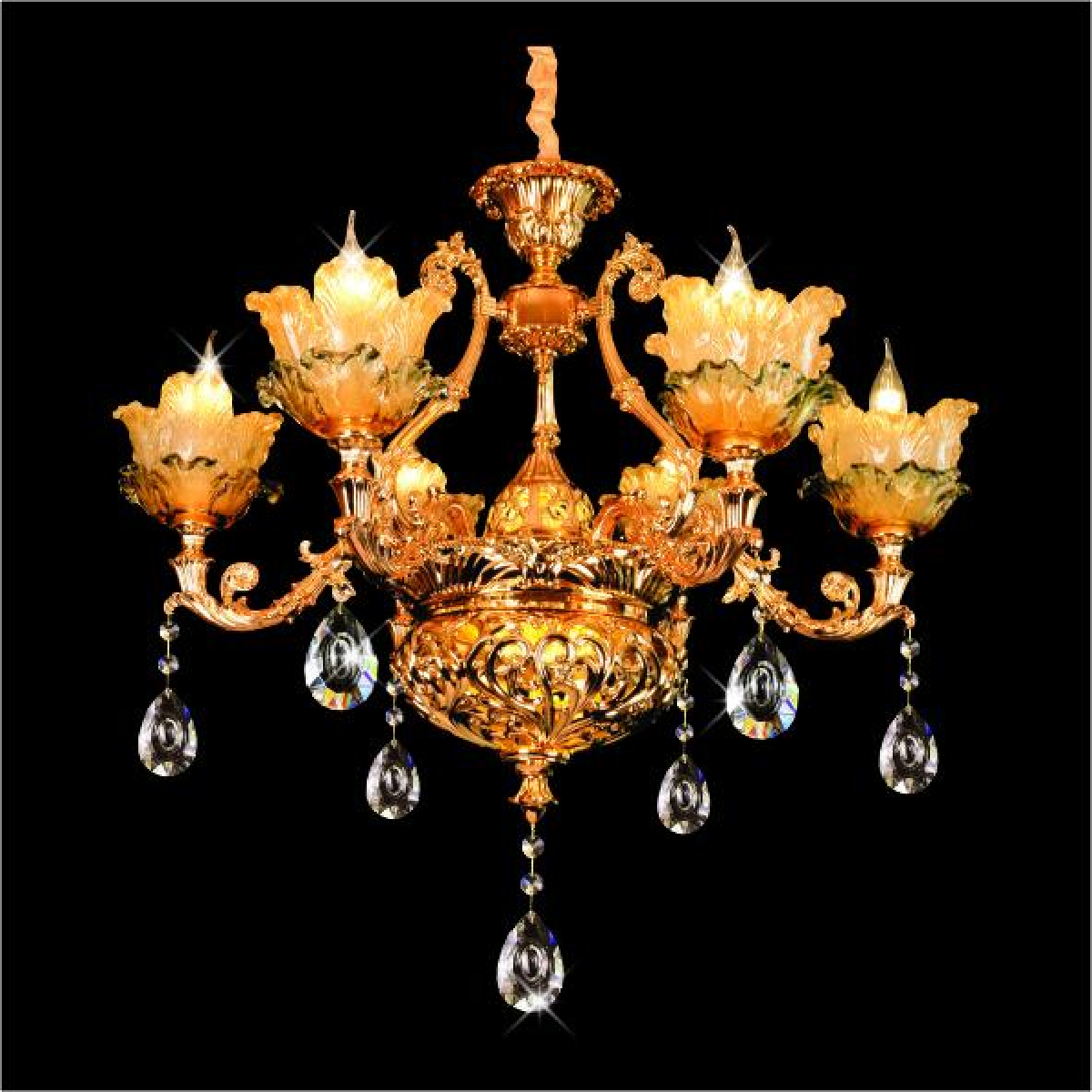 CNQT - 104: Đèn chùm 8 tay chao đá - KT: Ø600mm x H900mm - Đèn chân E14 x 8 bóng