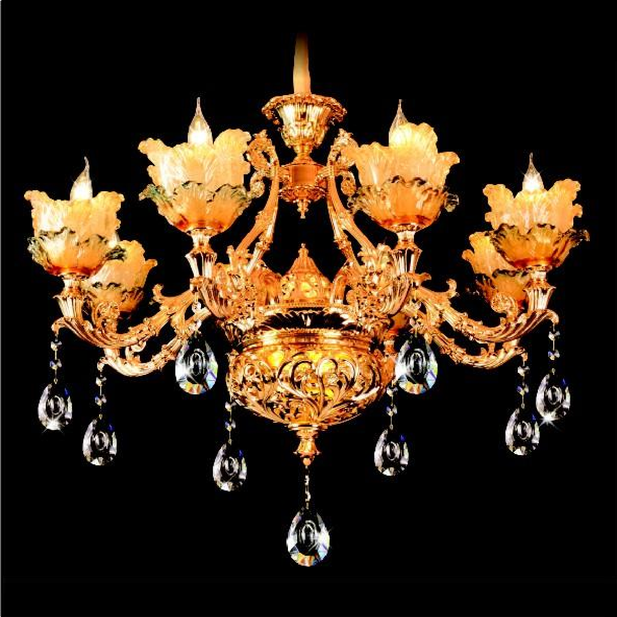 CNQT - 79: Đèn chùm 8 tay, chao thủy tinh - KT: Ø750mm x H900mm - Bóng đèn chân E27 x 8 bóng