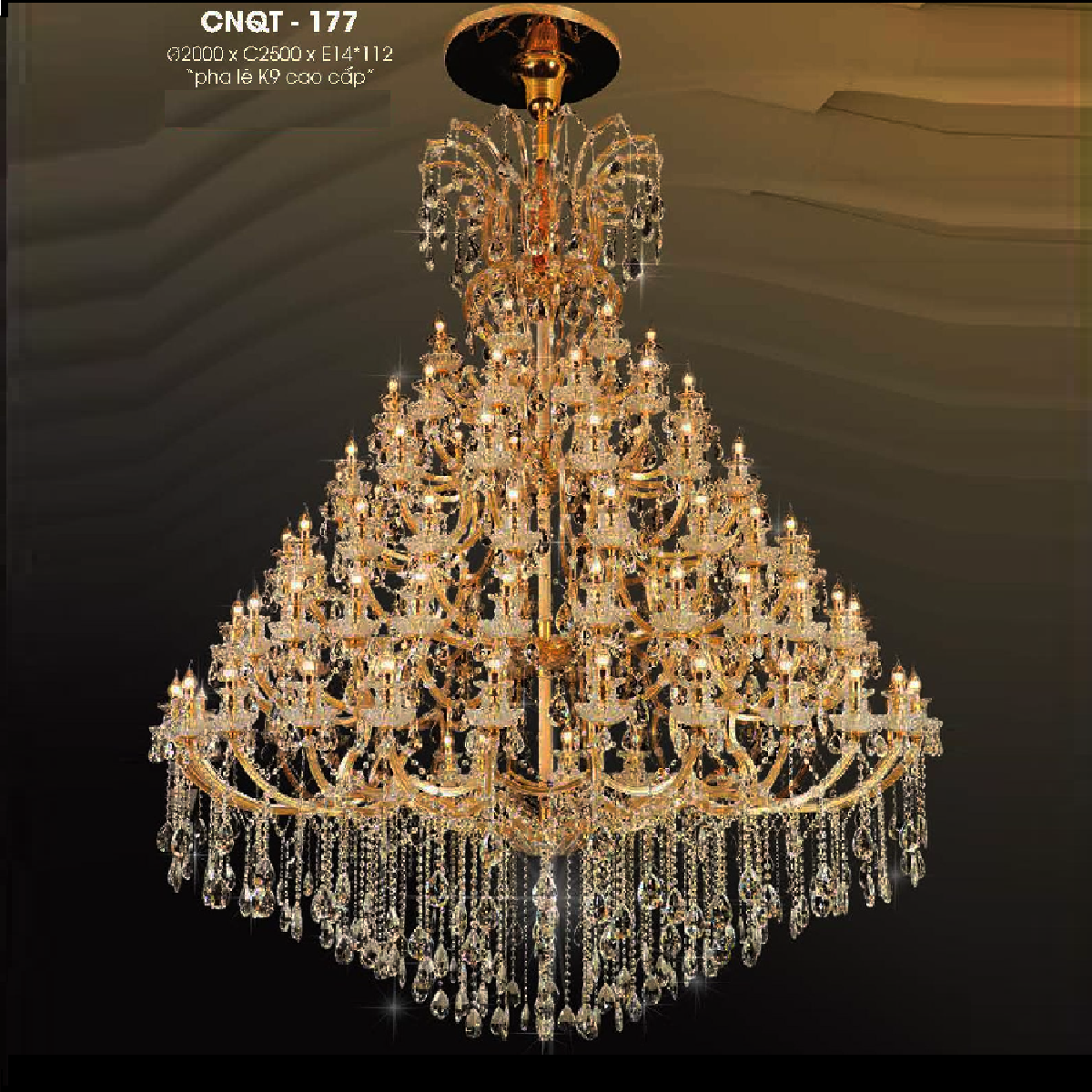 - Sản phẩm: CNQT - 177: Đèn chùm nến Phale K9 112 tay - KT: Ø2000mm x H2500mm - Bóng nến chân E14 x 112 bóng