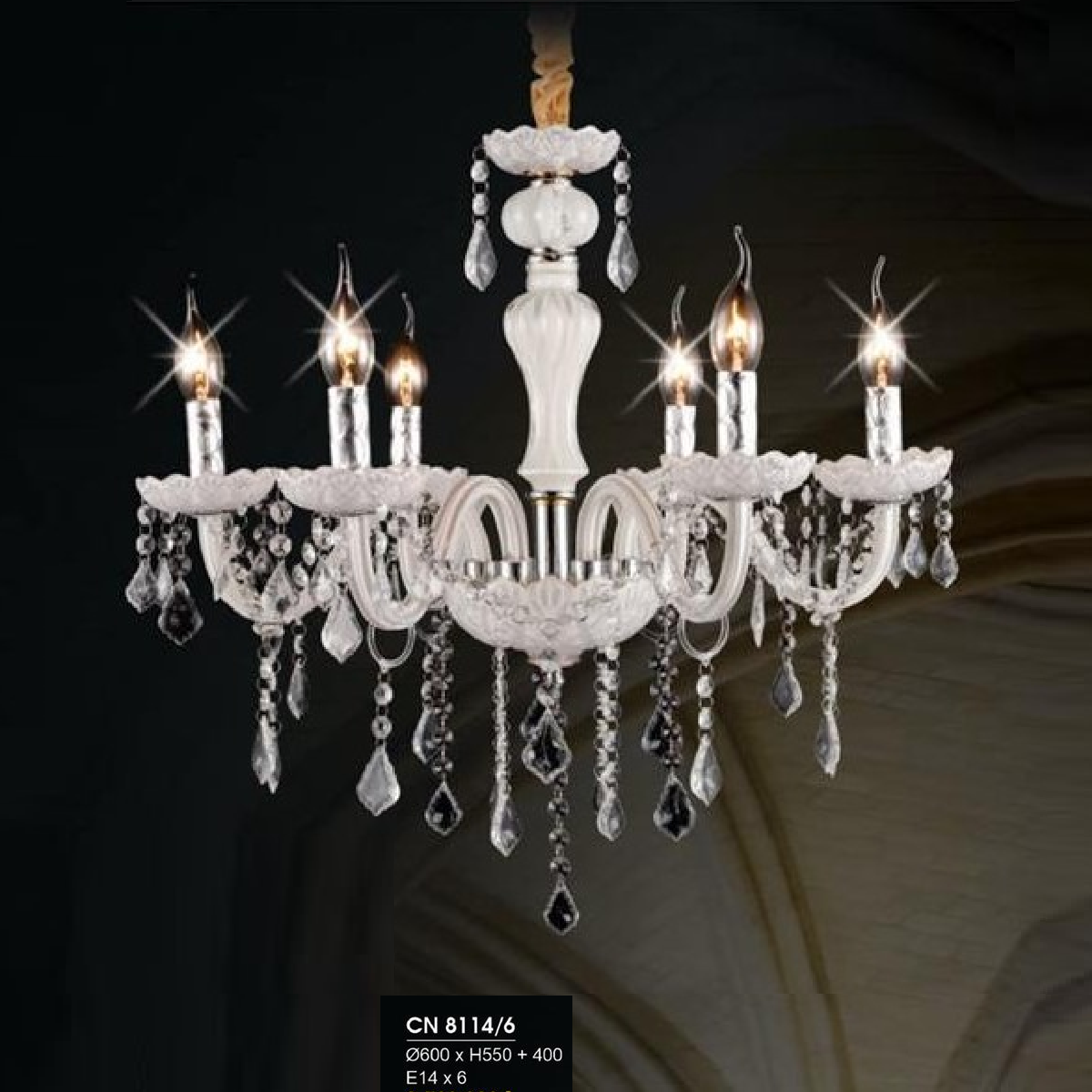 - Sản phẩm: HF - CN 8114/6: Đèn chùm nến 6 tay - KT: Ø600mm x H550mm +400mm - Bóng đèn E14 x 6 bóng