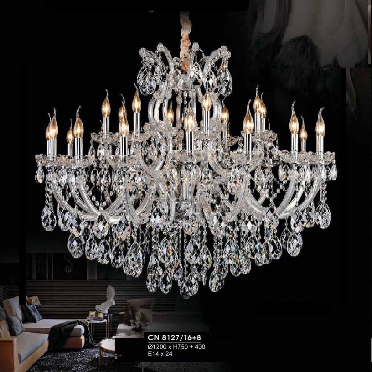 - Sản phẩm: HF- CN 8127/16+8: Chùm nến Phale 24 tay - KT: Ø1200mm x H750mm + 400mm - Đèn nến chân E14x 24 bóng