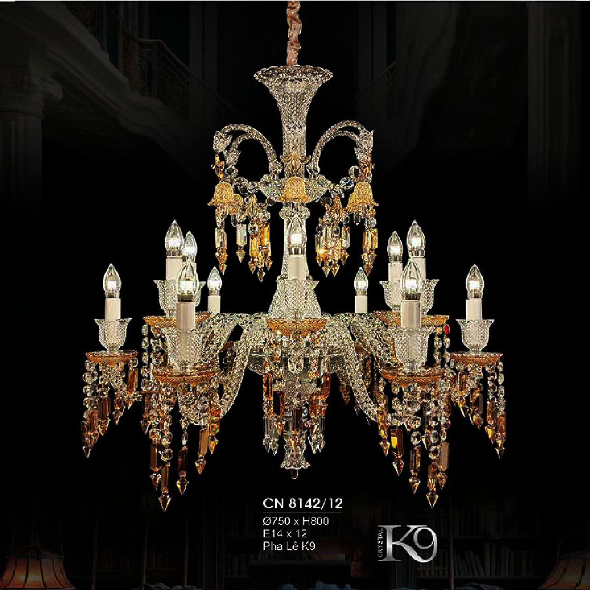 5. HF - CN 8142/12: Đèn chùm Phale nến 12 tay - KT: 750mm x H800mm - Bóng đèn E14 x 12 bóng