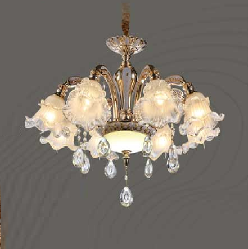 CNQT - 84: Đèn chùm 8 tay, chao thủy tinh - KT: Ø750mm x H900mm - Đèn chân E14 x 8 bóng