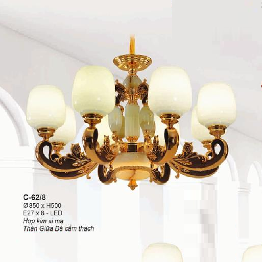 E - C - 62/8: Đèn chùm 8 tay - KT: Ø850mm x H500mm - Bóng đèn E27 x 8 bóng+ Đèn LED