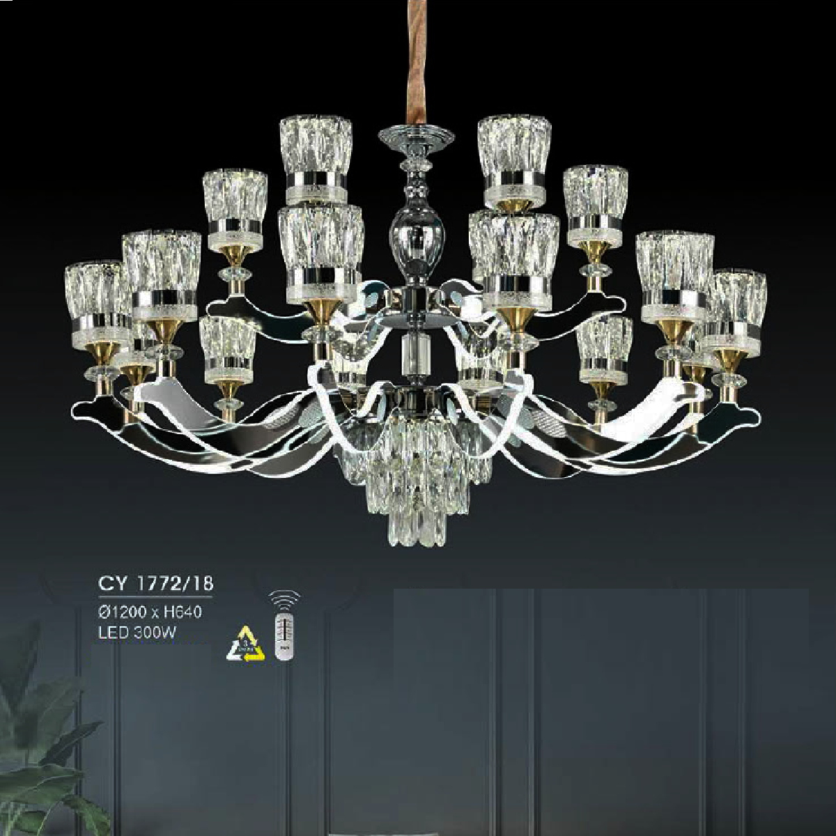 • Sản phẩm: HF - CY 1772/18: Đèn chùm LED 18 tay - KT: Ø1200mm x H640mm - Đèn LED 300 W, ÁS đổi 3 màu - Remote