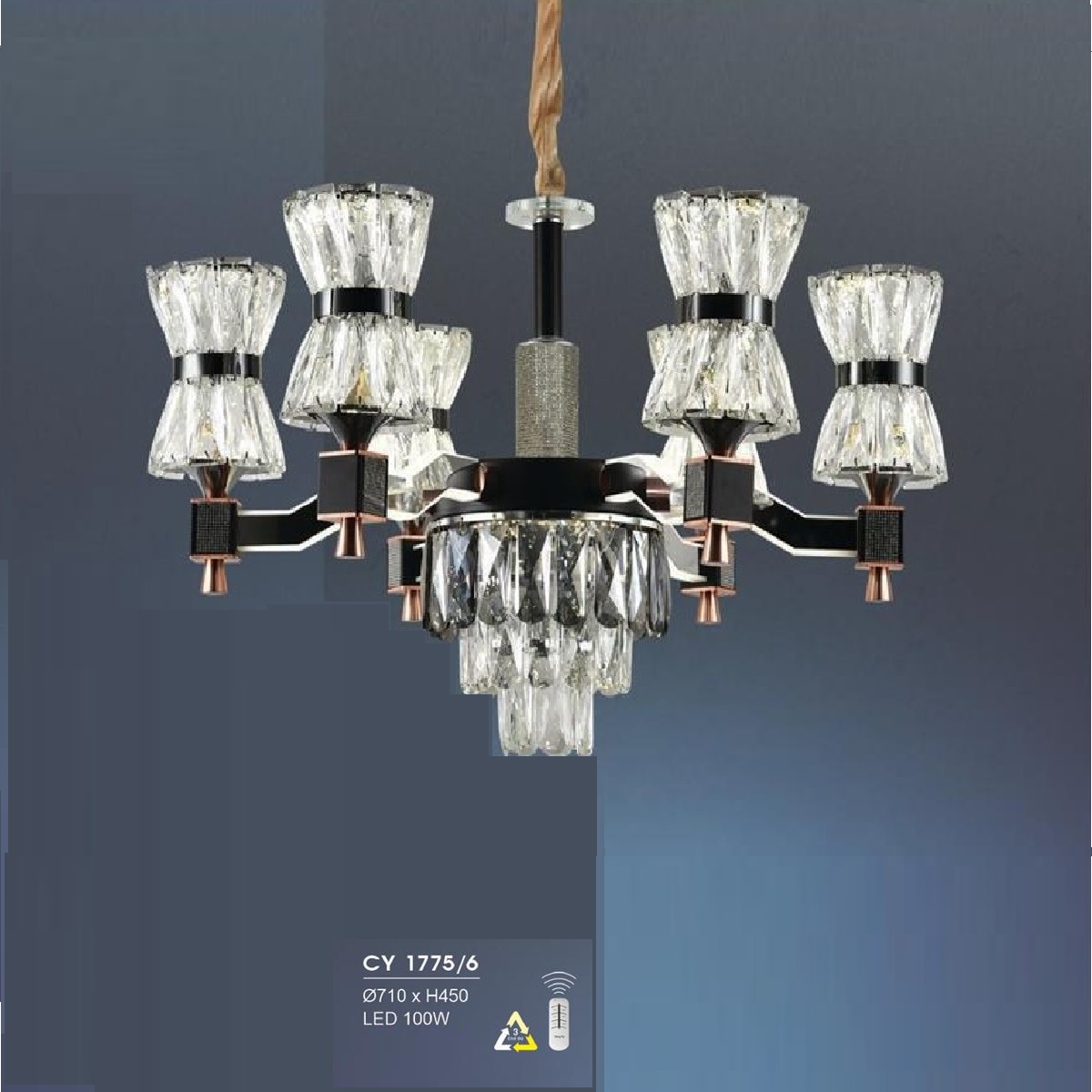 HF - CY 1775/6: Đèn chùm LED 6 tay - KT: Ø710mm x H450mm - Đèn LED 100W đổi 3 màu - Remote