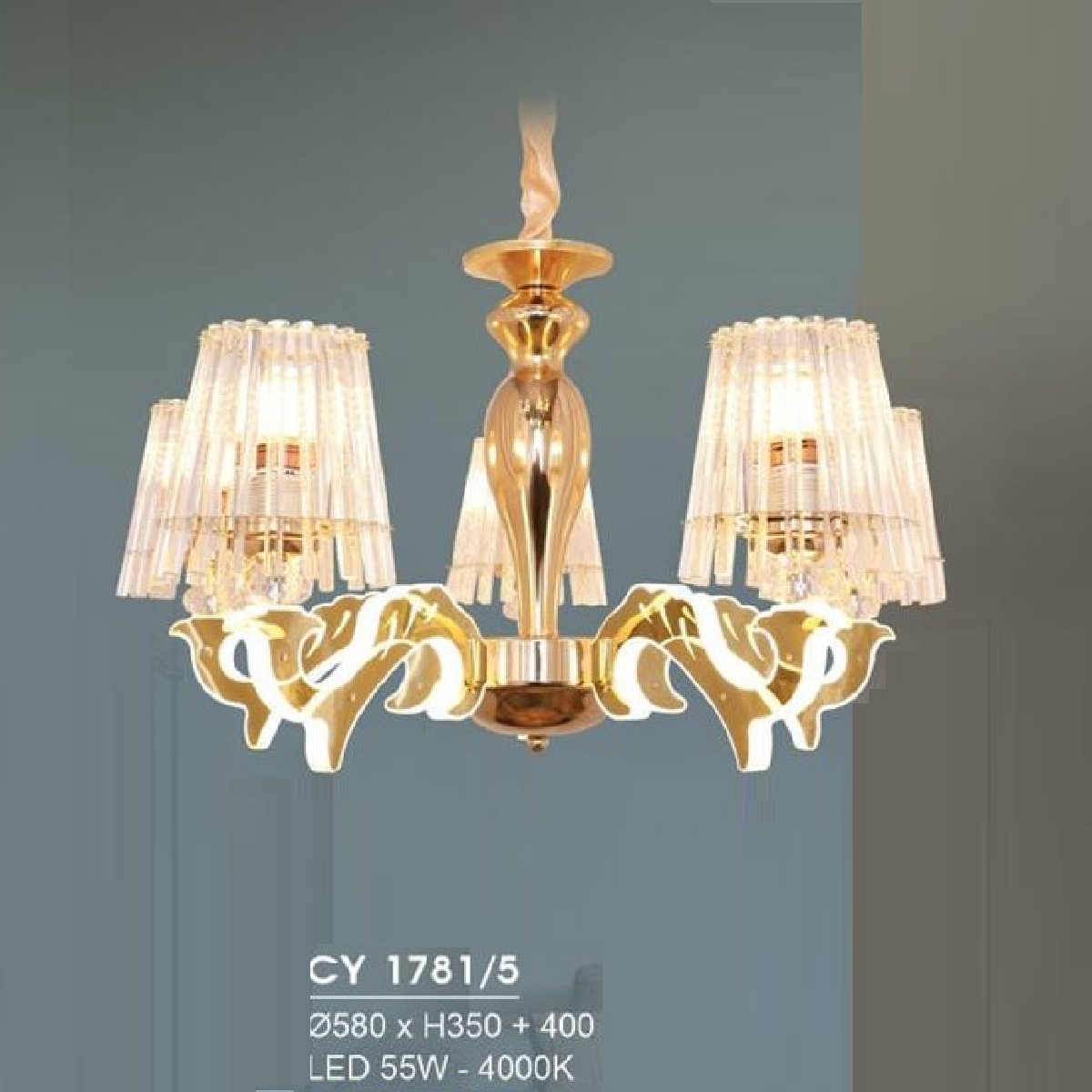 HF - CY 1781/5 : Đèn chùm LED 5 tay - KT: Ø580mm x H350mm + 400mm - Đèn LED 55W ánh sáng vàng 4000K