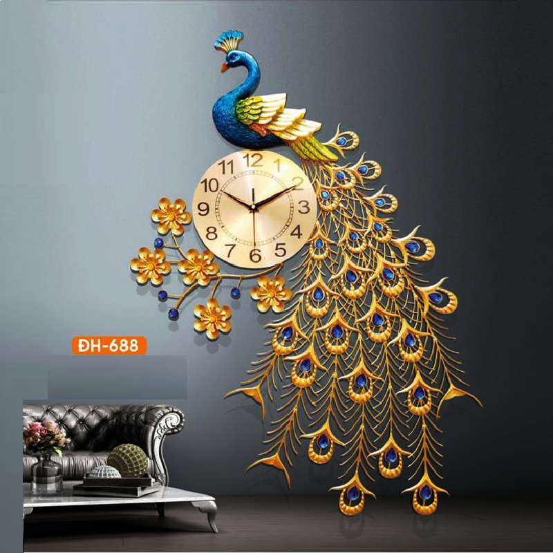 5. HF - ĐH - 688: Đồng hồ trang trí hình chim công - KT: L800mm x H680mm