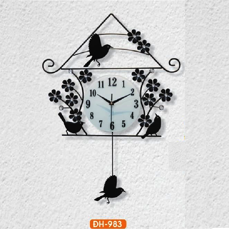 HF - ĐH - 600: Đồng hồ trang trí hình đôi chim công - KT:  L700mm x H700mm