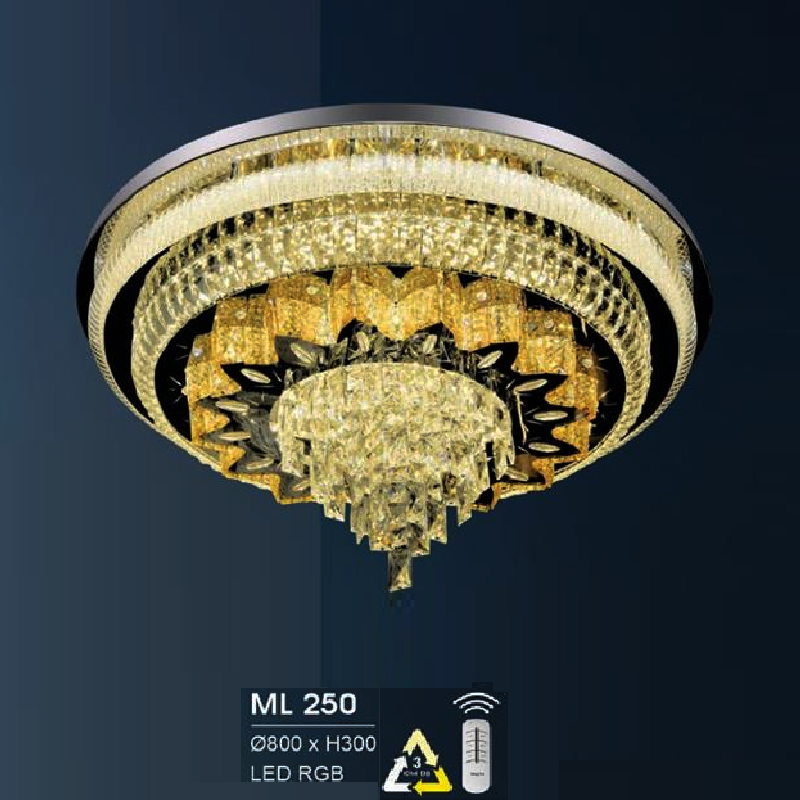 • Sản phẩm: HF - ML 250: Đèn áp trần LED - KT: Ø800mm x H300mm - Đèn LED RGB đổi 3 màu - Remote