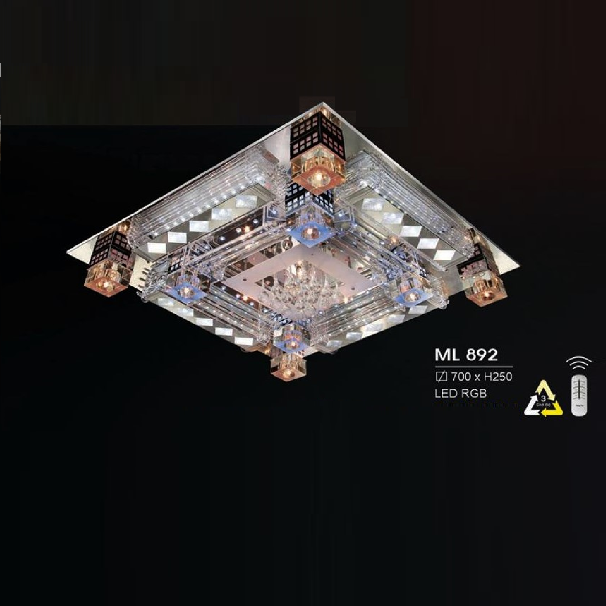 • Sản phẩm: HF - ML 892: Đèn áp trần LED - KT: L700mm x W700mm x H250mm - Đèn LED RGB đổi 3 màu - Remote