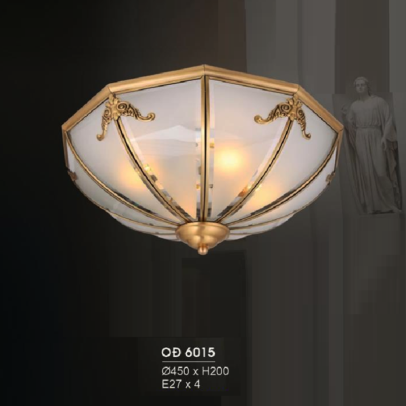HF - OĐ 6015: Đèn ốp trần đồng chao thủy tinh - KT: Ø430mm x H200mm - Bóng đèn chân E27 x 4 bóng