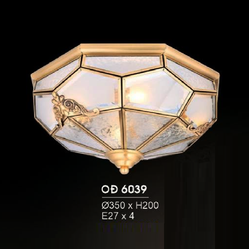 HF - OĐ 6039: Đèn ốp trần đồng chao thủy tinh - KT: Ø350mm x H200mm - Bóng đèn chân E27 x 4 bóng