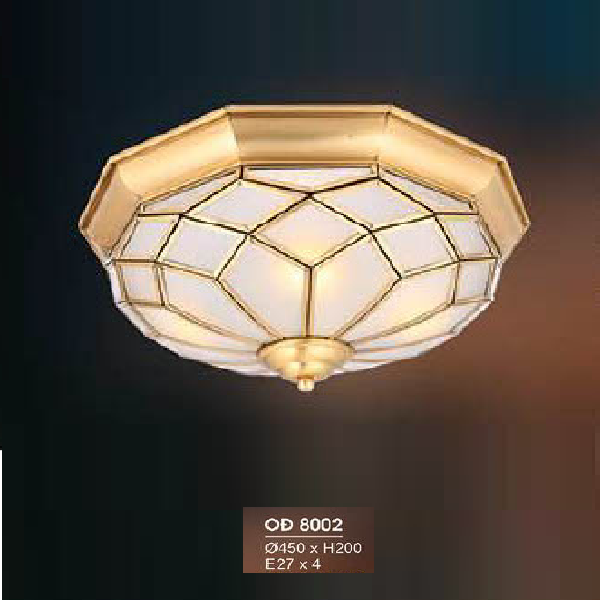 • Sản phẩm: HF - OĐ 8002: Đèn ốp trần đồng - KT: Ø450mm x H200mm - Bóng đèn E27 x 4 bóng