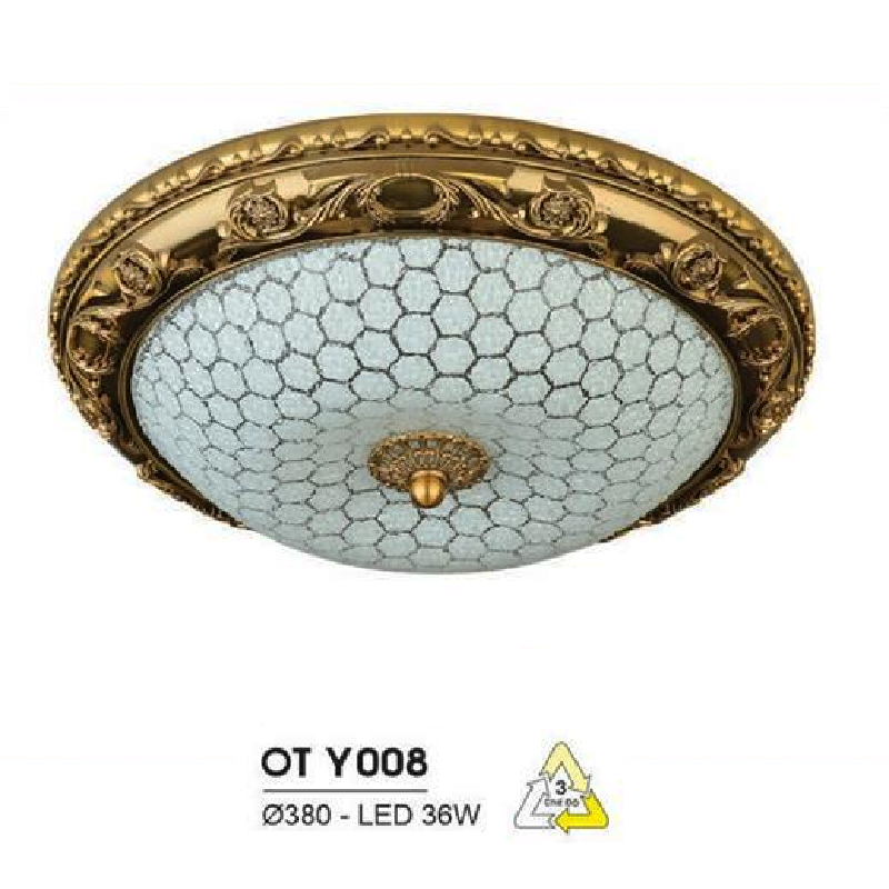 - Sản phẩm: HF - OT Y008: Đèn ốp trần LED chao thủy tinh - KT: Ø380mm - Đèn LED 36W đổi 3 màu