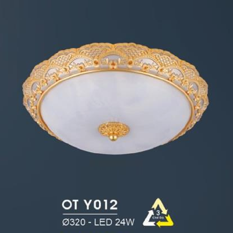 - Sản phẩm: HF - OT Y012: Đèn ốp trần LED chao thủy tinh - KT: Ø320mm - Đèn LED 24W đổi 3 màu
