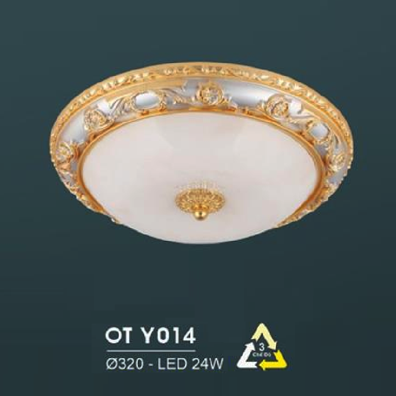 - Sản phẩm: HF - OT Y014: Đèn ốp trần LED chao thủy tinh - KT: Ø320mm - Đèn LED 24W đổi 3 màu