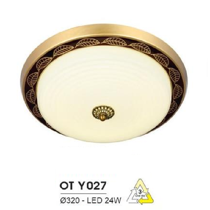 - Sản phẩm: HF - OT Y027: Đèn ốp trần LED chao thủy tinh - KT: Ø320mm - Đèn LED 24W đổi 3 màu