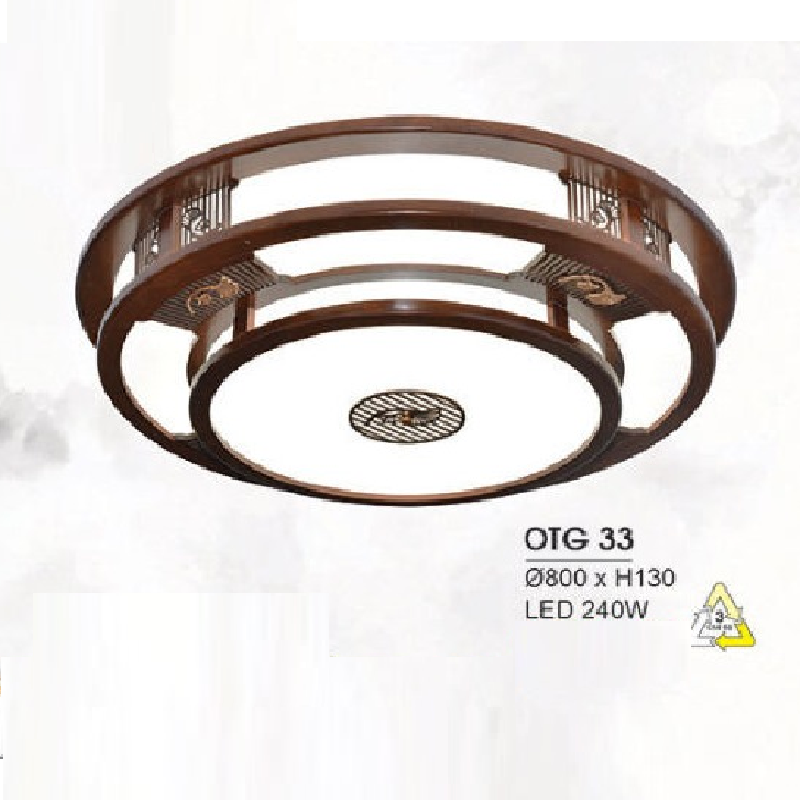 HF - OTG 33: Đèn ốp trần gỗ - KT: Ø800mm x H130mm - Đèn LED 240W ánh sáng đổi 3 màu