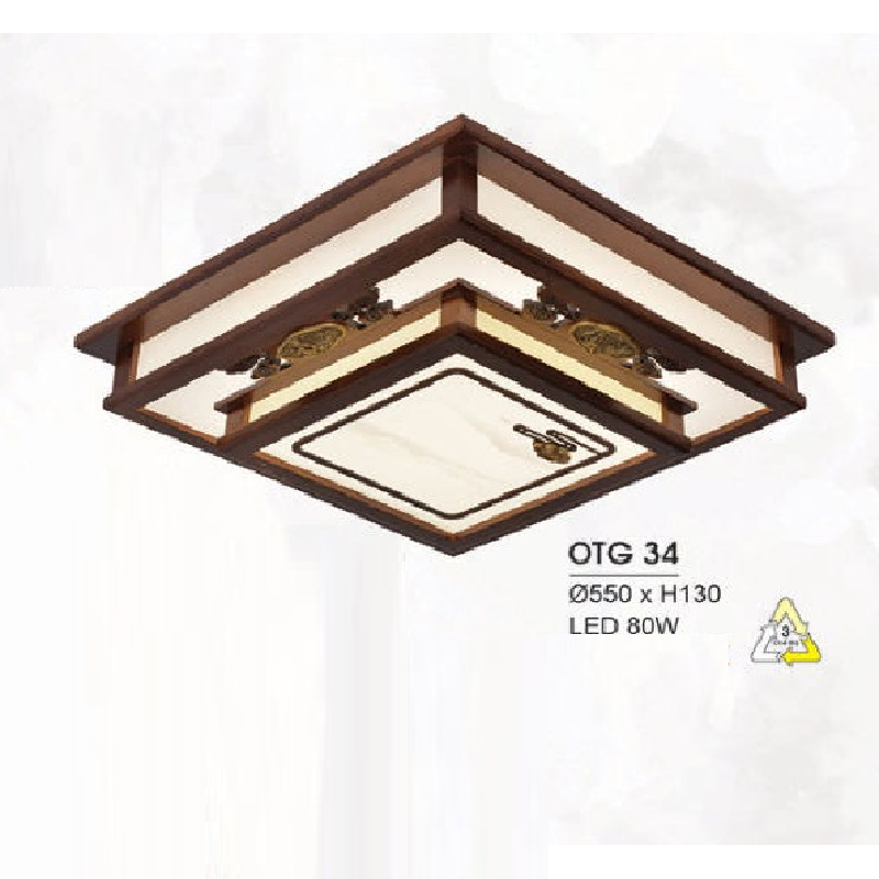 HF - OTG 34: Đèn ốp trần gỗ vuông - KT: L550mm x W550mm x H130mm - Đèn LED 80W ánh sáng đổi 3 màu