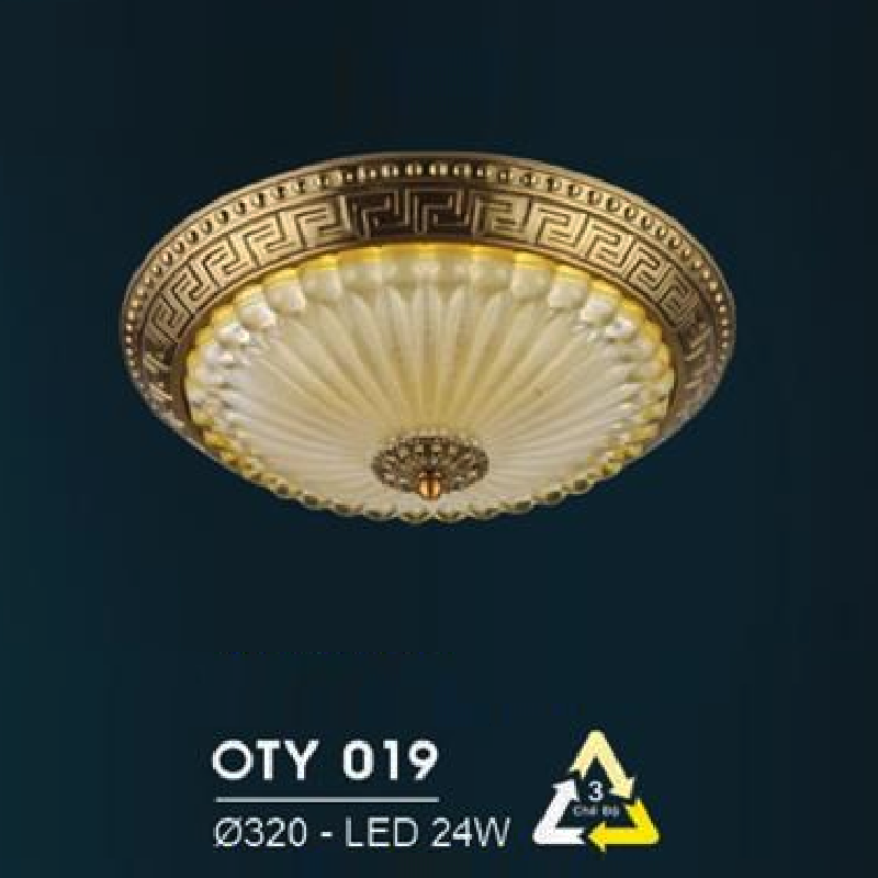 • Sản phẩm: HF - OTY 019: Đèn ốp trần LED chao thủy tinh - KT: Ø320mm - Đèn LED 24W đổi 3 màu