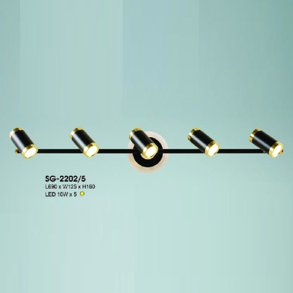 • Sản phẩm: HF - SG - 2202/5: Đèn rọi gương/tranh sáng 2 đầu, 5 bóng - KT: L690mm x W125mm x H160mm - Đèn LED 10W x 5 ánh sáng vàng