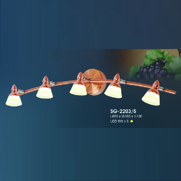 5. HF - SG - 2203/5: Đèn rọi gương/tranh 5 bóng - KT: L680mm x W160mm x H100mm - Đèn LED 5W x 5 ánh sáng vàng