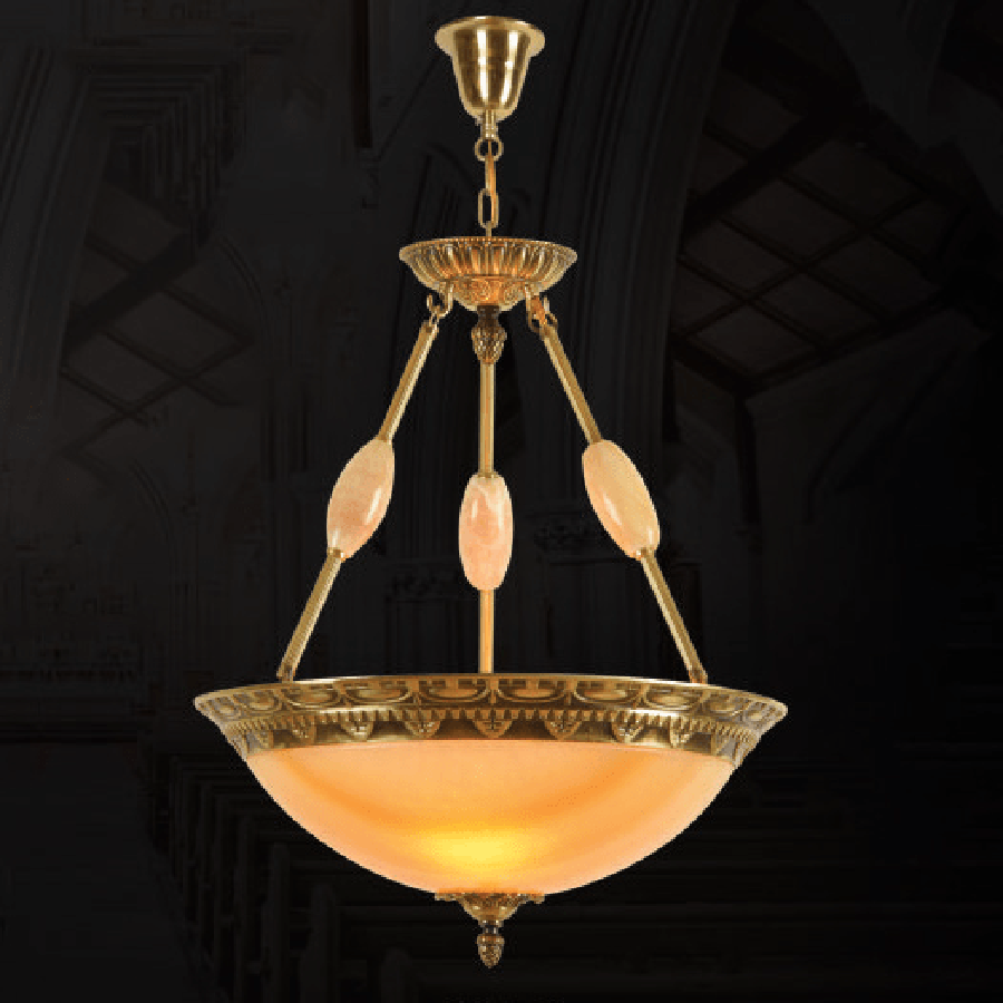 HF - TĐ - 217: Đèn thả đồng chao đá - KT: Ø500mm x H560mm + 450mm - Đèn chân E27 x 3 bóng