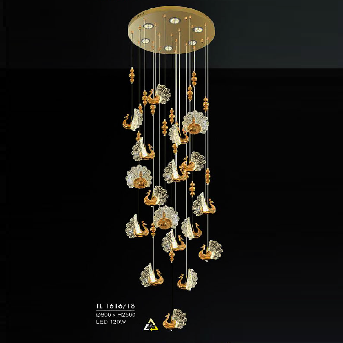 - Sản phẩm: HF - TL 1616/18: Đèn thả LED - KT: Ø600mm x H2500mm - Đèn LED 120W ánh sáng đổi 3 màu