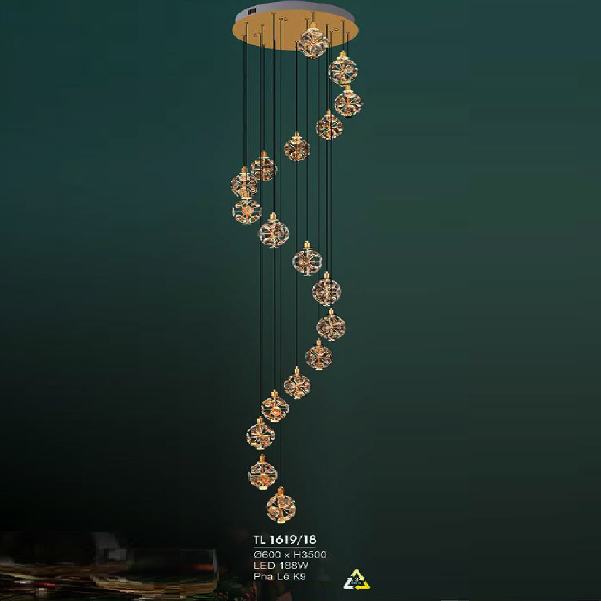 5. HF - TL 1619/18: Đèn thả LED Phale K9 - KT: Ø600mm x H3500mm - Đèn LED 188W ánh sáng đổi 3 màu