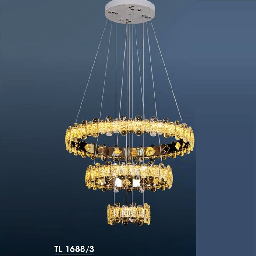 - Sản phẩm: HF - TL 1688/3: Đèn thả 3 vòng LED Phale - KT: Ø(600+400+200)mm x H1200mm - Đèn LED đổi 3 màu - Remote