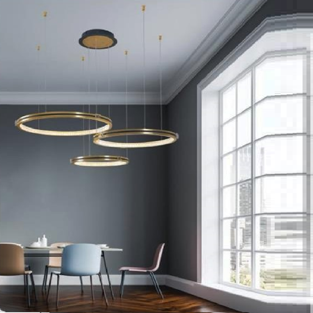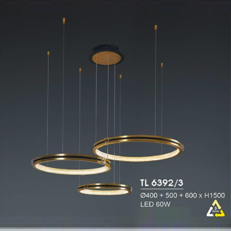 HF - TL 6392/3: Đèn thả 3 vòng LED gắn rời - KT: Ø(400+500+600)mm x H1500mm = Đèn LED 60W đổi 3 màu