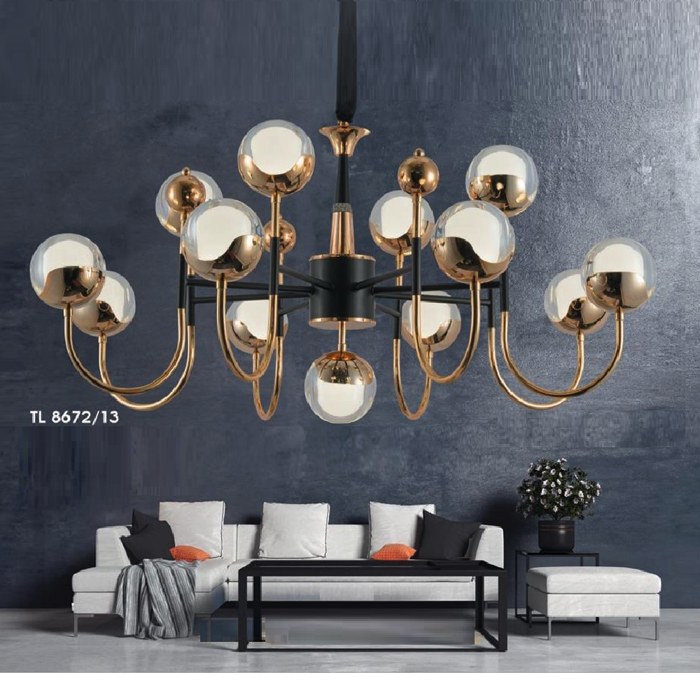 • Sản phẩm: HF - TL 8672/10: Đèn chùm LED 13 bóng - KT: Ø950mm x H480mm - Đèn LED 96W đổi 3 màu