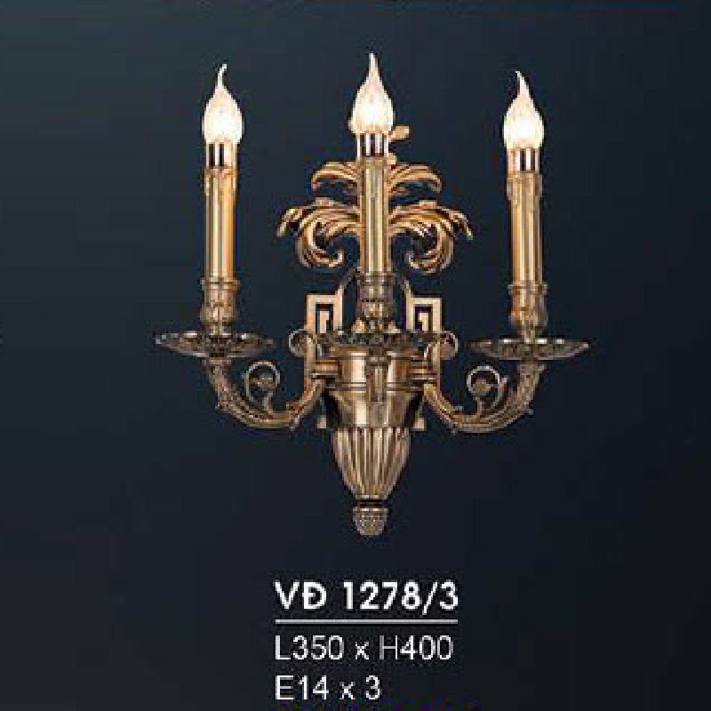 • Sản phẩm: HF - VĐ 1278/3: Đèn gắn tường đồng 3 bóng - KT: L350mm x H400mm - Bóng đèn E14 x 3