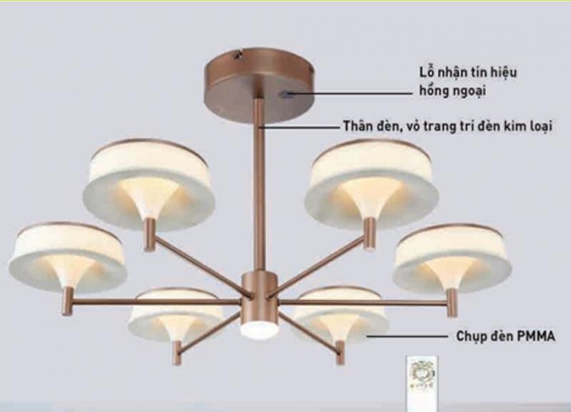 • Mô tả : Chất liệu: Hợp kim màu đồng - KT: Ø780 x H450mm - Công suất: 52 W - Ánh sáng trắng /vàng - Remote
